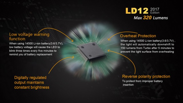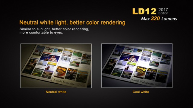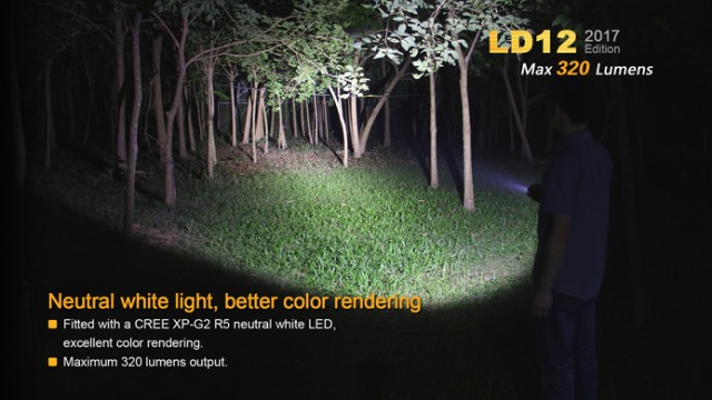 The redesigned Fenix LD12 is now compatible with 14500 rechargeable Li-ion batteries. It’s fitted with a CREE XP-G2 R5 neutral white LED for better color rendering, and delivers maximum 320 lumens. With four brightness levels plus strobe mode, and convenient dual switch, the LD12 is definitely the must-have flashlight for everyday carry.