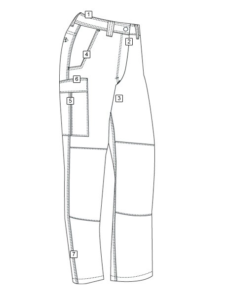 - 2-cargo pockets with covered flap and inverted bellow that is secured with a bar tack