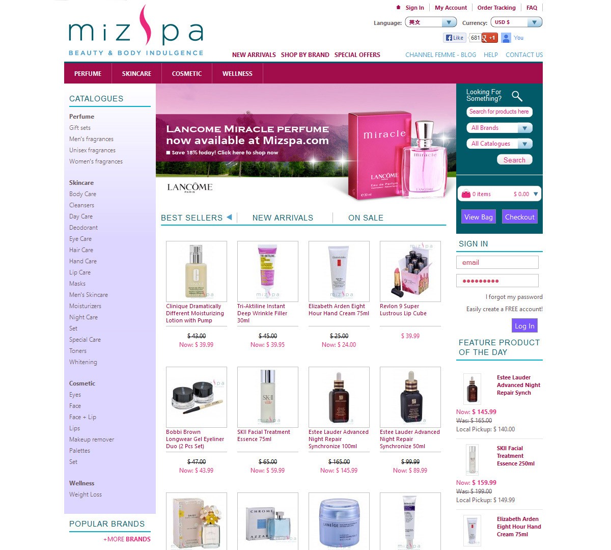Mizspa.com is an ecommerce retail beauty shopping site. We provide hundreds of types of beauty products including skincare, cosmetics, and perfumes, of many of your favorite brands.